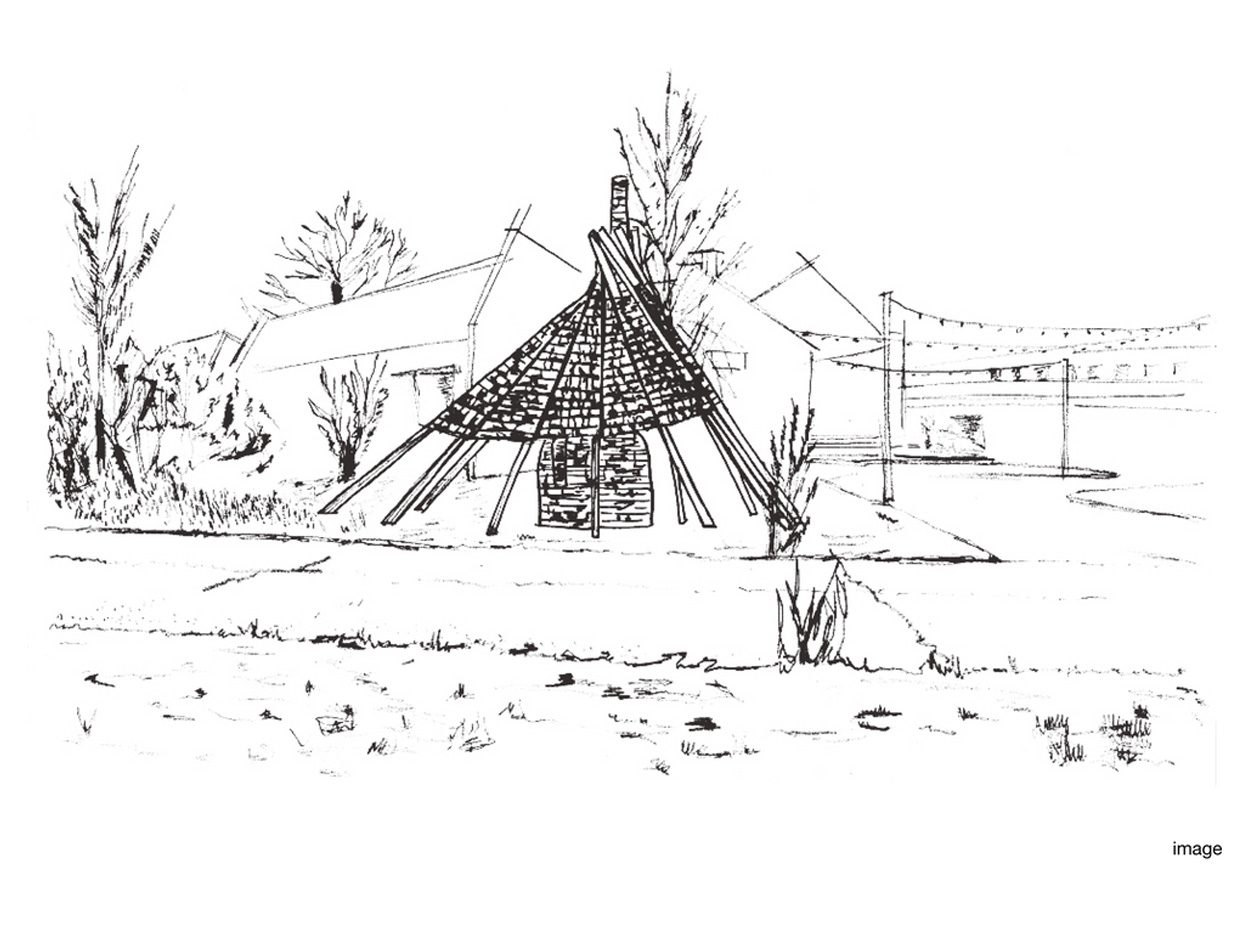 Located at the garden plots, the oven is built in a likewise try and error method used during gardening. The family of three elements are built linear, whereby afterwards the construction process is visible since it ameliorates with each element. The spaces in between the elements, foresee an open flow during workshops and the festival. First, the small gardening table will be finished from foundation till polished concrete tiles as tabletop. These tiles function as roof for the rammed earth table volume. Secondly, the large cooking table is built with knowledge gained from the first table. Pizza dough can be rolled out directly on the smooth tiles. Last, the negative of the oven determines its shape. The massive volume is a monument dedicated to earth in the vegetables garden. The "strange" element in contrast to the wild and organic environment invites to come closer. Around convivial sitting places are created by the stone borders of the garden plots. Vegetation of tall wildflowers create an intimate enclosed feeling in the mowed grass picnic patches.