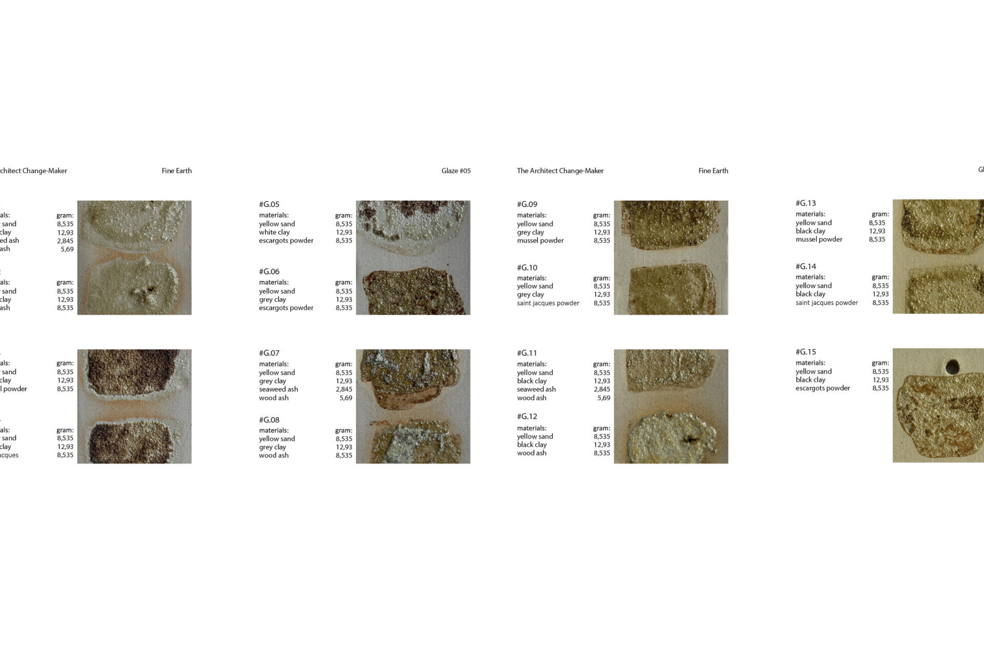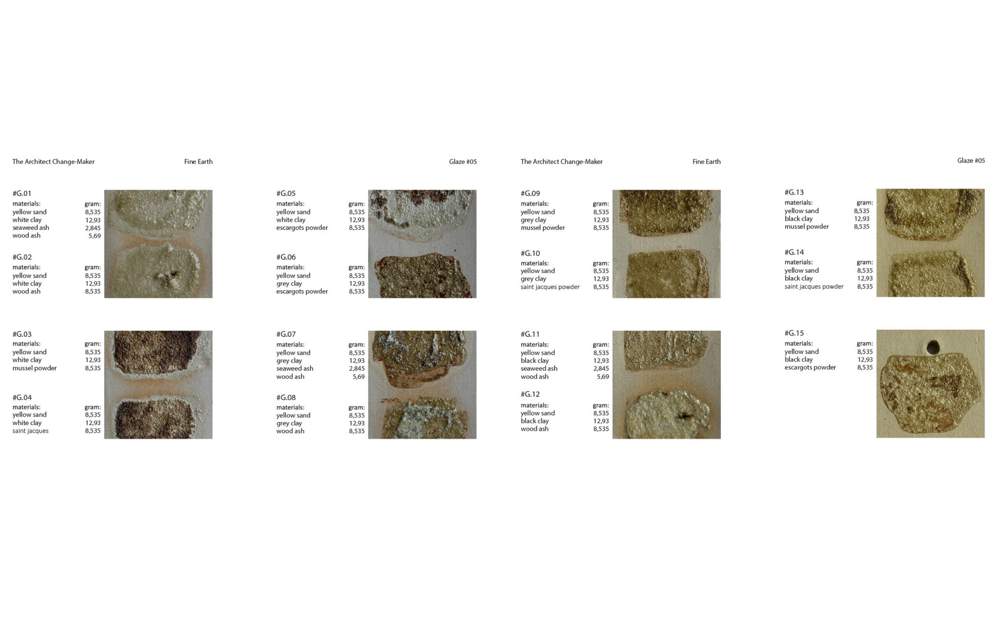 Finally, we experimented with glazes composed of silica, fluxes, and clay stabilizers. While intended for our own clay tiles, firing issues caused them to break or melt, so the glazes were ultimately tested on commercial clay instead.
